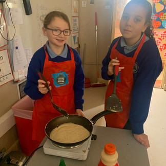 The older classes made their own pancakes , we were very impressed with their culinary skills.